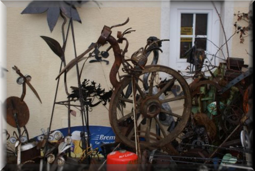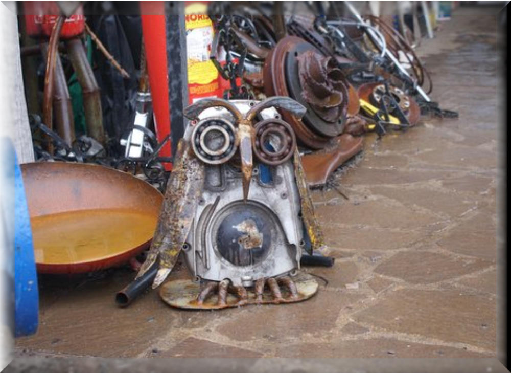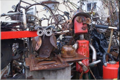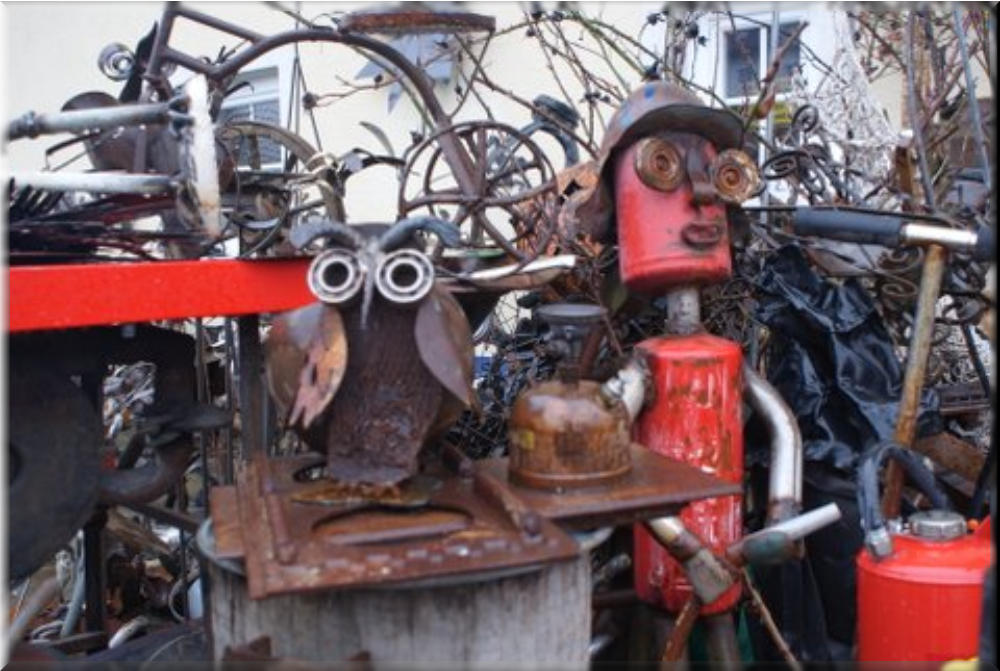 Ist Recycling Künstler . Macht aus Schrott Kunstgegenstände.